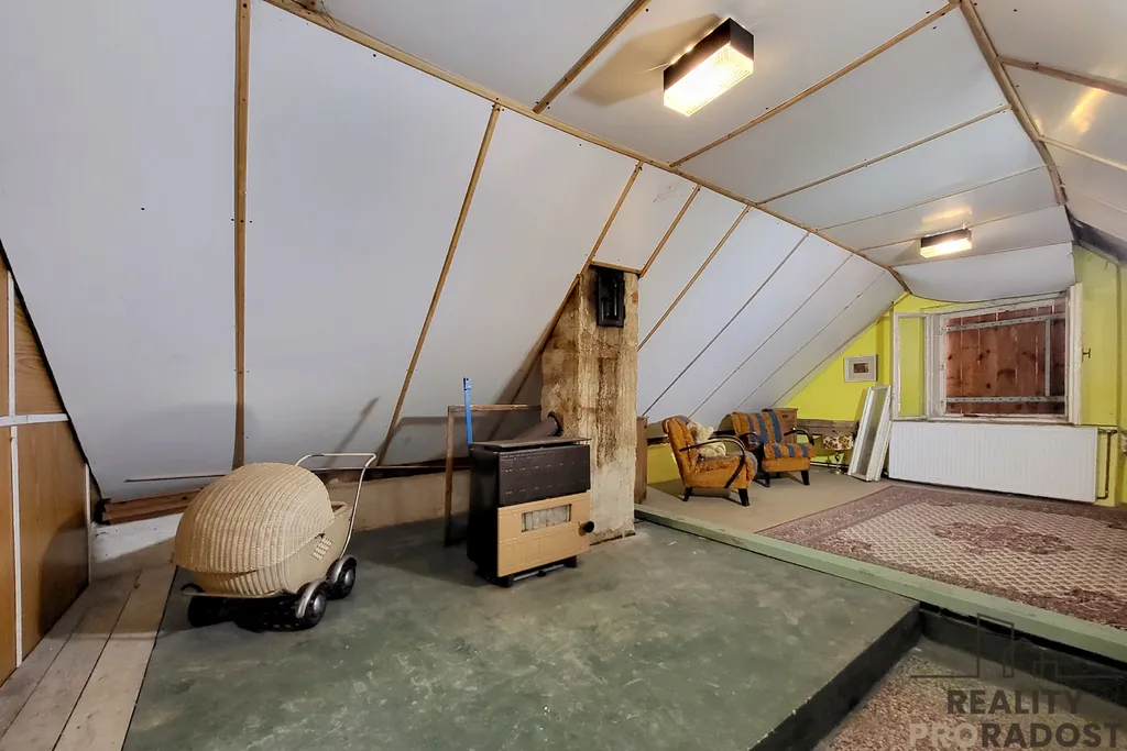 obytné podkroví s možností vybudování až 2–3 pokojů a druhé koupelny