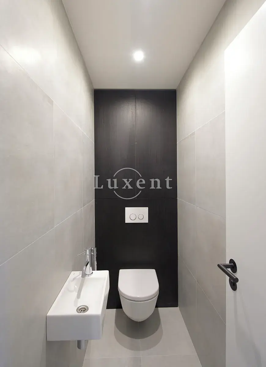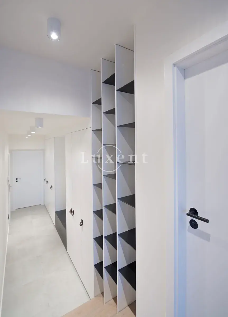 Dispozice nabízí vstupní chodbu, koupelnu, ložnici a prostorný obývací pokoj s kuchyňským koutem vybaveným všemi spotřebiči – indukční varnou deskou, digestoří, horkovzdušnou troubou, myčkou a lednicí s mrazákem. Součástí vybavení je i pračka se sušičkou. Rekonstrukce bytu proběhla ve vysokém standardu a byly zde použity nejkvalitnější materiály. Repasované dřevěné parkety, nová okna s dvouvrstvým sklem. Klimatizace ve všech místnostech.