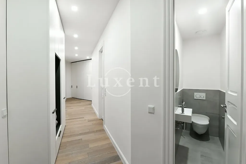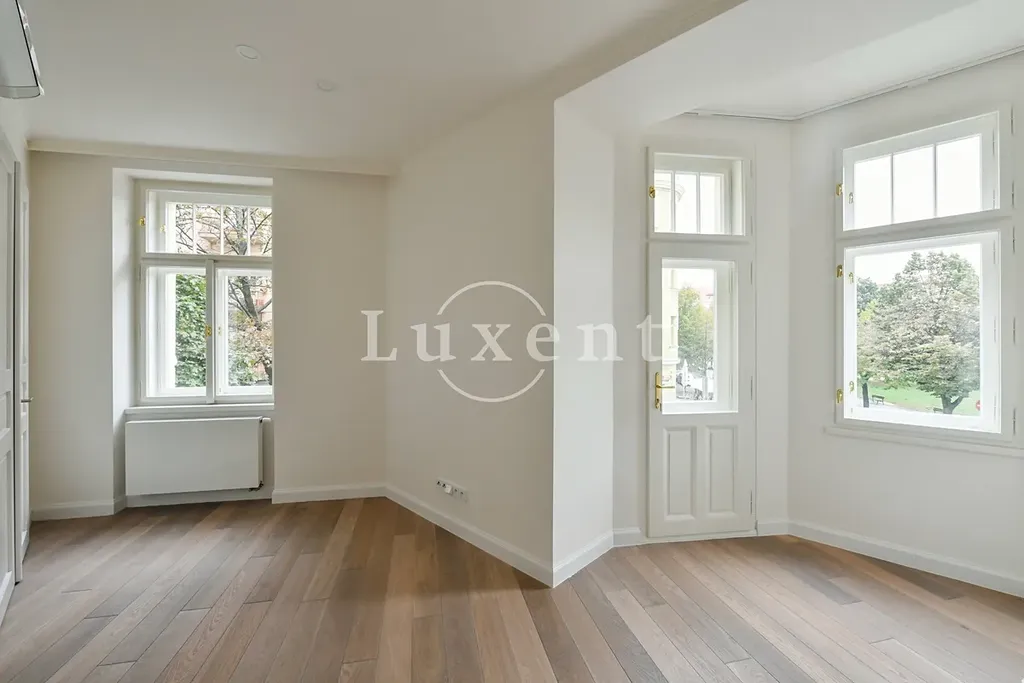 Rekonstrukce bytu proběhla ve vysokém standardu a byly zde použity nejkvalitnější materiály. Repasované dřevěné parkety, nová okna s dvouvrstvým sklem. Klimatizace ve všech místnostech.