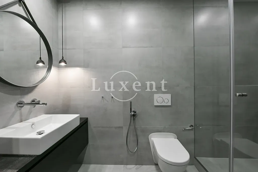 Dispozice nabízí vstupní chodbu, koupelnu se sprchovým koutem, vanou, toaletou a bidetem, master ložnici s en suite koupelnou se sprchovým koutem a toaletou, další ložnici a prostorný obývací pokoj s kuchyňským koutem vybaveným všemi spotřebiči – indukční varnou deskou, digestoří, horkovzdušnou troubou, myčkou a lednicí s mrazákem. Součástí vybavení je i pračka se sušičkou.