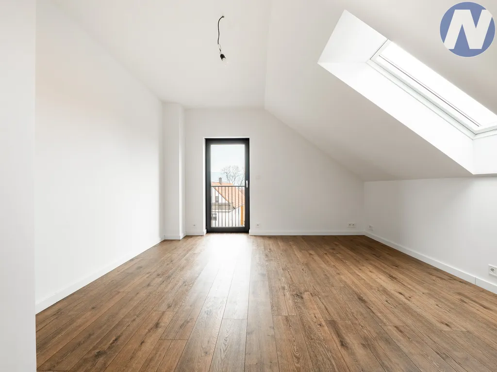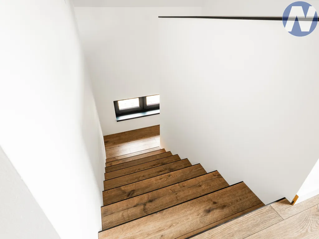 Interiér domu je laděn do moderního stylu s důrazem na kvalitu a komfort. V celém domě jsou položeny vinylové podlahy s vysokou odolností. O tepelnou pohodu a úsporu nákladů se starají okna s izolačními trojskly a venkovními roletami na dálkové ovládání. K dispozici jsou dvě zařízené koupelny, s vanou a sprchovými kouty (v každém patře jedna), což zajišťuje maximální pohodlí pro celou rodinu. Dále je k dispozici pochozí půda pod celou střechou v dosahu přes skládací schody ve stropu jako další úložný prostor.