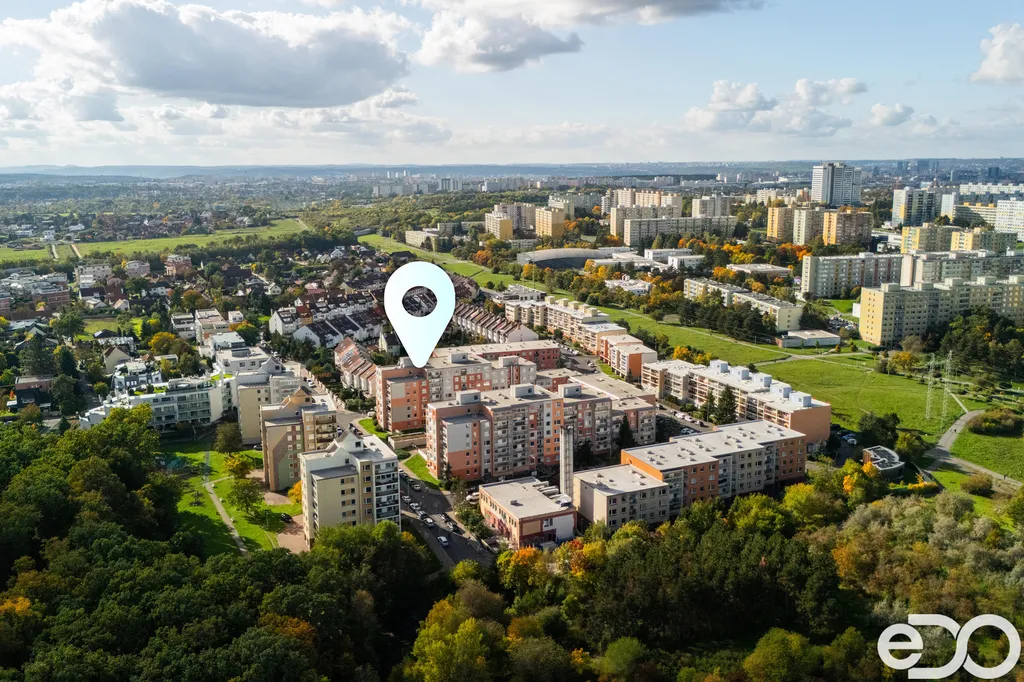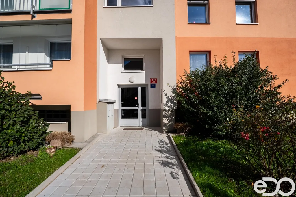 Dispozice je praktická a funkční – obývací pokoj s kuchyňským koutem a vstupem na lodžii, ložnice orientovaná do vnitrobloku a koupelna s vanou a toaletou.