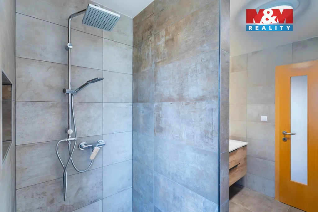 Dům prošel rekonstrukcí – (mimo spodní byt). Horní patro nabízí komfortní bydlení bez nutnosti dalších investic: 3 samostatné pokoje, každý s klimatizací a elektrickými žaluziemi, koupelnu se sprchovým koutem a WC a přípravu na kuchyňský kout. Praktickým benefitem je také samostatný pokoj na mezipatře s výhledem do zahrady.