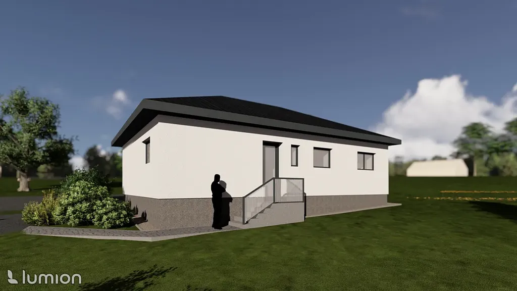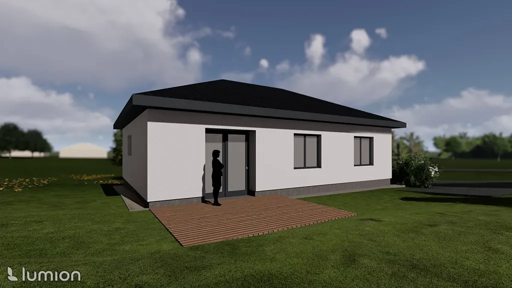 Okna – plastová s trojskly, barva antracit/bílá, vstupní dveře – plastové bezpečnostní , barva antracit/bílá dle výběru klienta. Střecha - valbová, BRAMAC , barva černá.Vytápění – podlahové teplovodní.