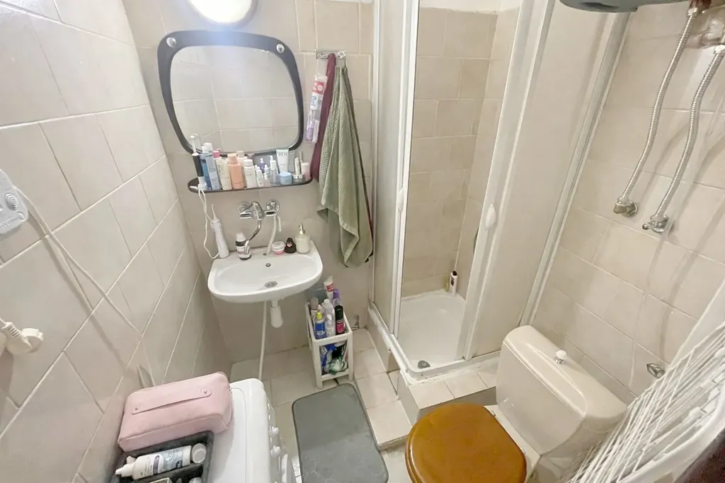 Koupelna je vybavena sprchovým koutem a je společná s WC. Na podlahách je kombinace dlažby, PVC a koberce. Nechybí ani vestavěné skříně, které poskytují dostatek úložného prostoru. Připojení k internetu a kabelové televizi je samozřejmostí (Vodafone/O2).