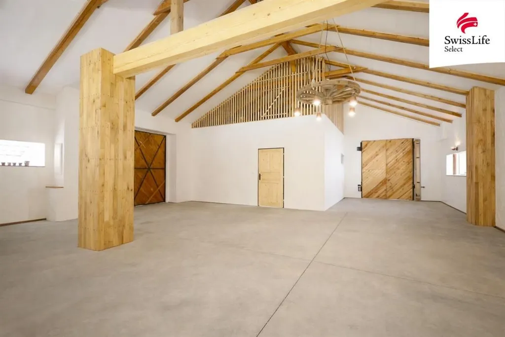 Nabízím k prodeji nadstandardně provedený velký masivní srub o dispozici 5+kk s celkovou užitnou plochou přibližně 205 m a co je důležité - SOUČÁSTÍ PRODEJE je také samostatná zděná stavba se zastavěnou plochou 230 m, kterou lze využívat souběžně jako luxusní společenské zázemí s vlastními WC, garáž, dílna, sklad, a nebo například pro milovníky koní využít část stavby jako prostory k ustájení nejednoho krasavce.
