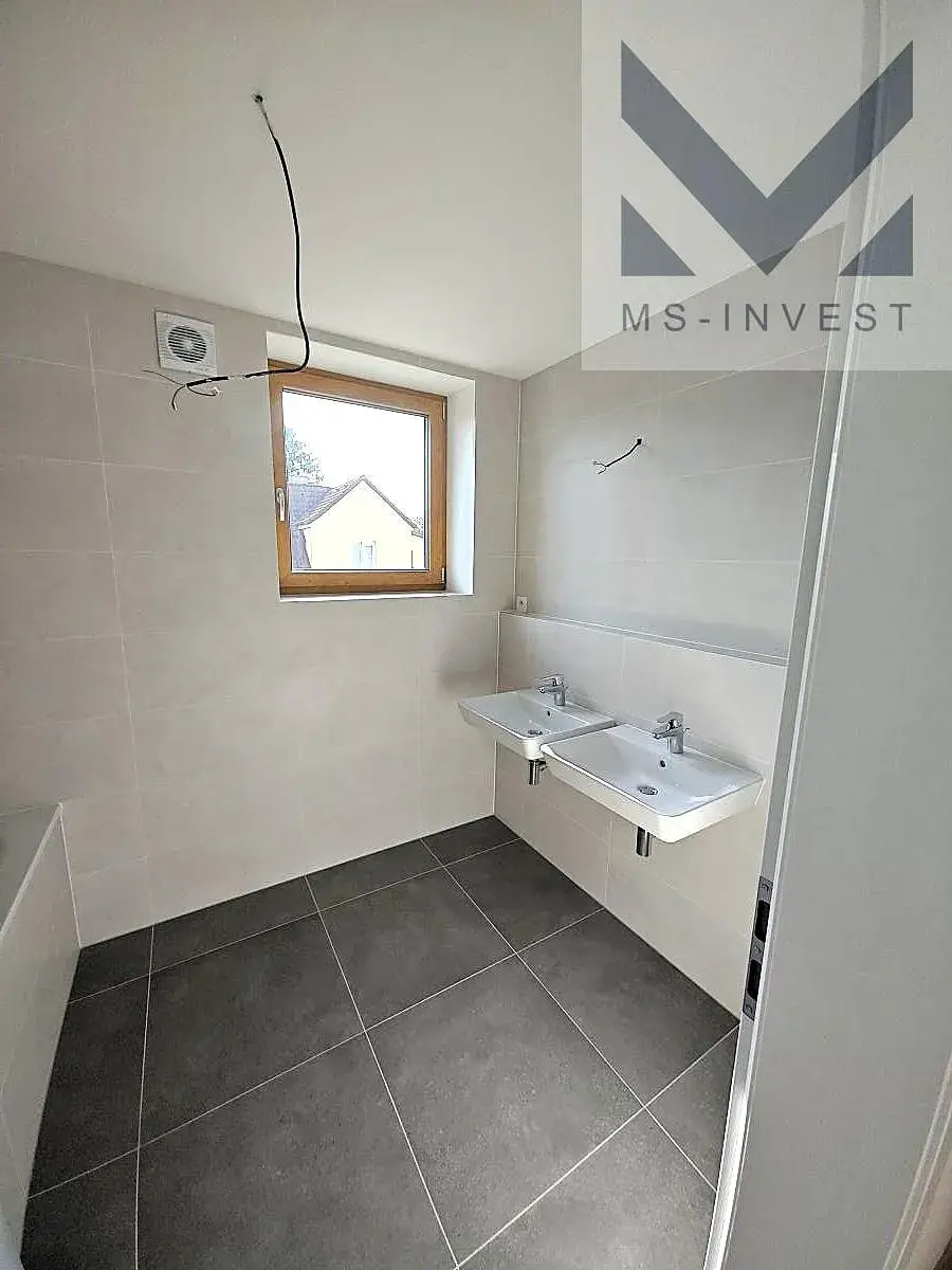 Tento dům je jako jeden z posledních dostupných domů v projektu vybaven stavební přípravou na osazení chlazení klimatizace ve všech obytných místnostech. Vytápění a ohřev vody je zajištěn plynovým kondenzačním kotlem. V ceně domu je mimo jiné fotovoltaika s bateriovým úložištěm (9 FV panelů na střeše a baterie 5 KWh) s možným napojením do distribuční soustavy, retenční nádrž na dešťovou vodu 2,5 m3 s čerpadlem a dálkově ovládané hliníkové předokenní žaluzie na všech oknech v obytných místnostech. Domy jsou dokončené, zkolaudované a připravené k nastěhování. Prodej přímo od developera.