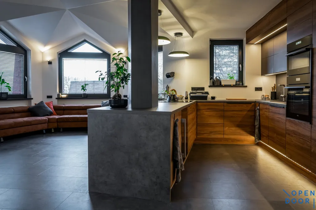 Dominantou bytu je velkorysý obytný prostor (38,6 m²) s velkou sedací soupravou zhotovenou na míru, propojující obývací část, jídelnu a kuchyni s ostrůvkem. Kuchyňská linka, také vyrobená na míru, s vestavěnými high-end spotřebiči (varná deska, lednice s mrazákem, myčka nádobí, trouba, vinotéka) tvoří elegantní centrum celého bytu. Ložnice (15,5 m²) poskytuje klid a soukromí má vestavěné skříně a je důmyslně propojená se samostatnou šatnou (7,5 m²) s dalšími vestavěnými systémy. Pracovna / druhý pokoj nabízí přímý vstup na terasu o velikosti cca 14 m². Tento prostor je ideální pro home office s možností relaxace na čerstvém vzduchu, dětský pokoj nebo jako klidná soukromá zóna. Ve všech pokojích je sound system (multiroom) a v celém bytě smart osvětlení (systém Philips Hue). Koupelna je provedena v luxusním tmavém dekoru s velkoformátovými obklady, walk-in sprchovým koutem a designovým podsvíceným zrcadlem. Toaleta samostatně. K bytu náleží jedno parkovací místo ve dvougaráži v přízemí domu a dále zděný sklep.