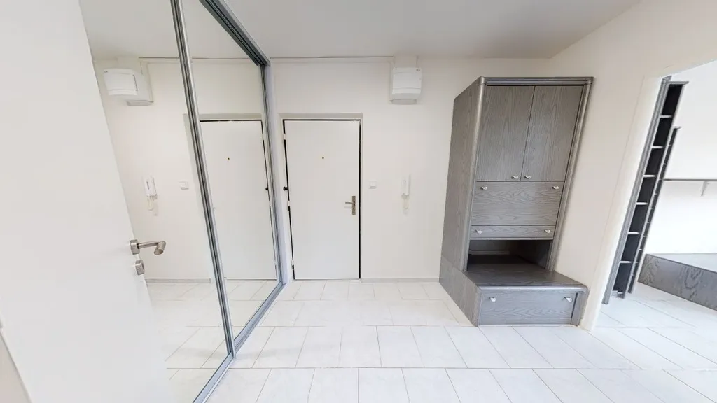 Kuchyňský kout s bohatým úložným prostorem, elektrická trouba, lednice, myčka na nádobí, plynový sporák, digestoř, led osvětlení. Jeden samostatný neprůchozí pokoj vhodný jako ložnice je zařízený šatní skříní se zrcadlem. Obývací pokoj je zařízen sedačkami a televizním nábytkem. Na chodbě se nachází vestavěná skříň. Moderní koupelna je zařízená pračkou, nadstandardním sprchovým koutem s termostatickou baterií.
