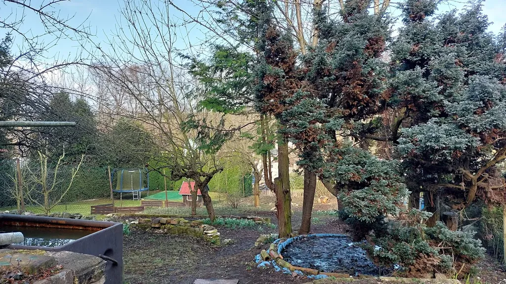 Zahrada je osázena krásnými, vzrostlými a plodícími stromy a keři. Můžete se těšit na vlastní úrodu jablek, meruněk, třešní, lískových oříšků i rybízu. Místo nabízí dostatek prostoru jak pro pěstování, tak pro odpočinek s rodinou či přáteli.