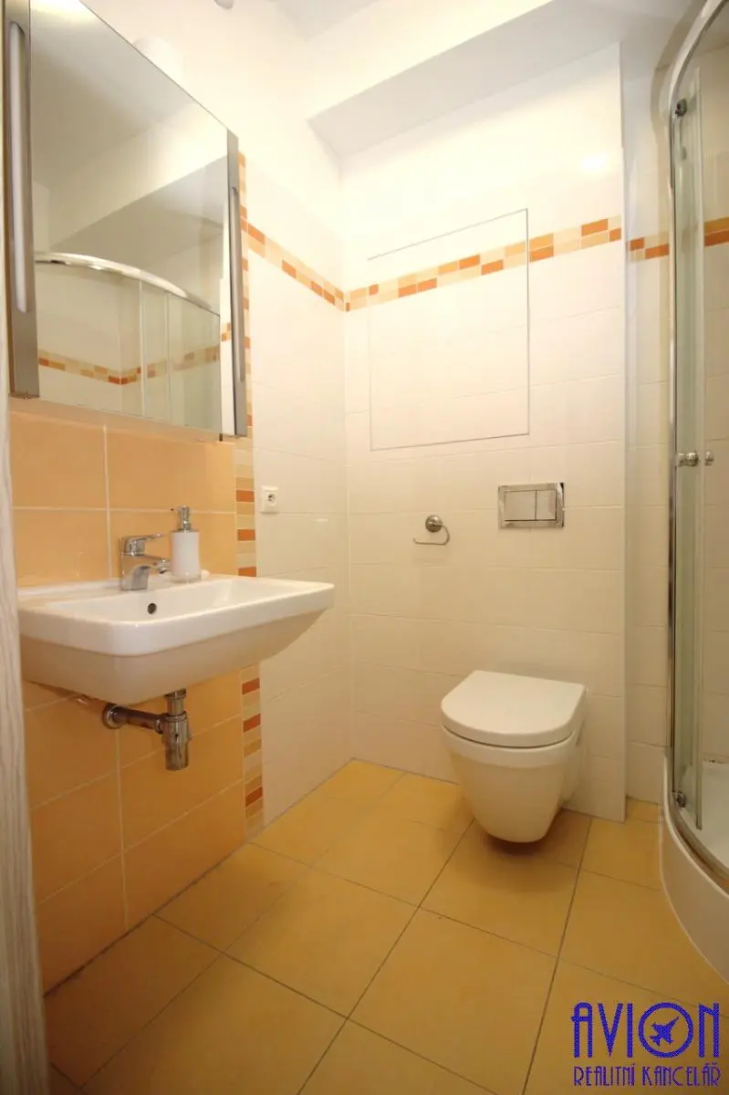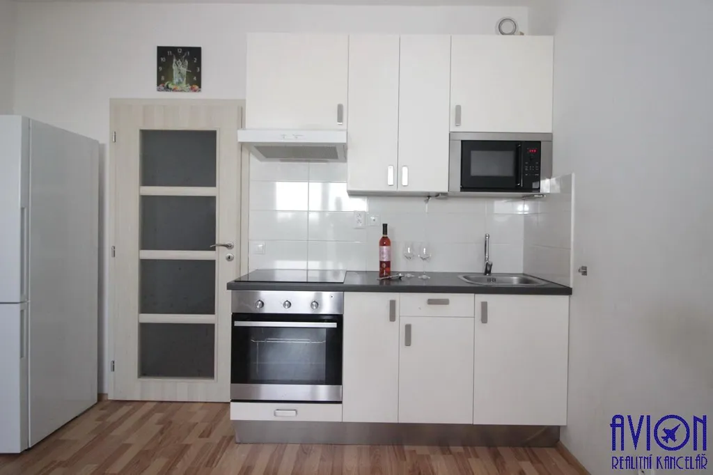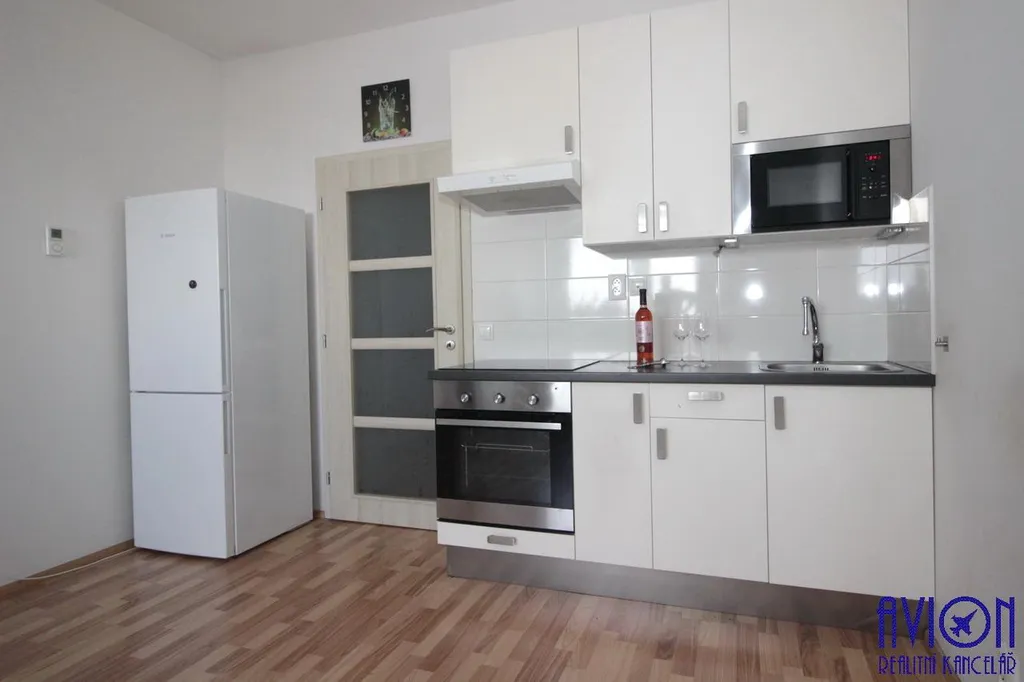 Kuchyňská linka se sklokeramickou deskou, vestavnou troubou a digestoří, kombinovaná lednička s mrazákem. Koupelna se sprchovým koutem, WC a pračkou. Podlahy plovoucí, koupelna dlažba. V předsíni moderní prostorná skříň se zrcadlem, v obývacím pokoji je jídelní stůl a židle, rozkládací postel. K bytu patří sklepní kóje mimo byt cca 1,5 m2 a komora v bytě 1 m2. Plastová okna, balkon s krásným výhledem, kabelová TV + internet. Byt bude nově vymalovaný.