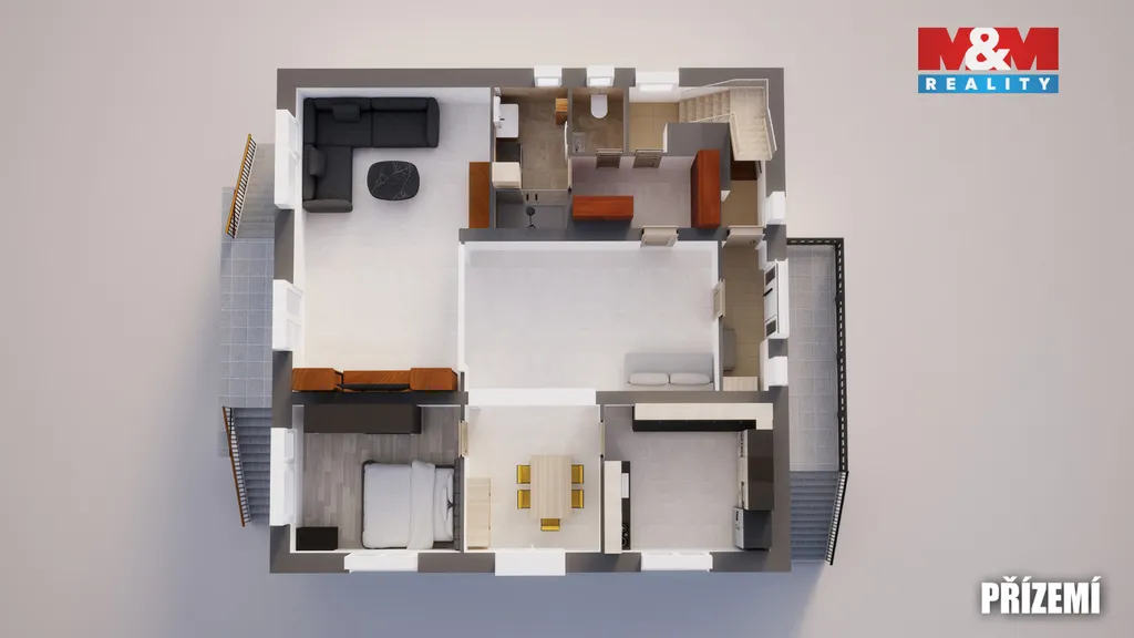 Tak posuďte sami ... "TO MÁTE " ... v suterénu velkou garáž, dílnu, sklady, místnost na zabijačku, sociálku, ... bezbariérově se dostanete do přízemí, kde je jídelna, hala, kuchyň, ložnice, obývák se vstupem na terasu, šatna, koupelna, ... schodištěm vystoupáte do 2.NP, kde je hala spojená s obývákem a vstupem na druhý balkón, šatna, ložnice, dětský pokoj, další vymazlená kuchyně a třetí balkón. Samozřejmě je všechno nově zrekonstruováno, zatepleno, jsou tu 3 skla, tepelné čerpadlo, klimatizace, venkovní žaluzie,... Vedle domu pak zbrusu nová "pártypergola" s grilem, udírnou a barem, bazén se slanou vodou, druhá garáž s dílnou