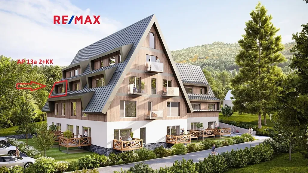 Prezentovaný apartmán č. 1 o dispozici 2+KK se nachází v přízemí a disponuje celkovou podlahovou plochou 42,3 m². K jednotce náleží balkon o velikosti 2,4m², který umožňuje relaxaci s výhledem na okolní přírodu. K apartmánu dále náleží privátní uzamykatelná kolárna + lyžárna (2,5m²), možnost využívat společného wellness.