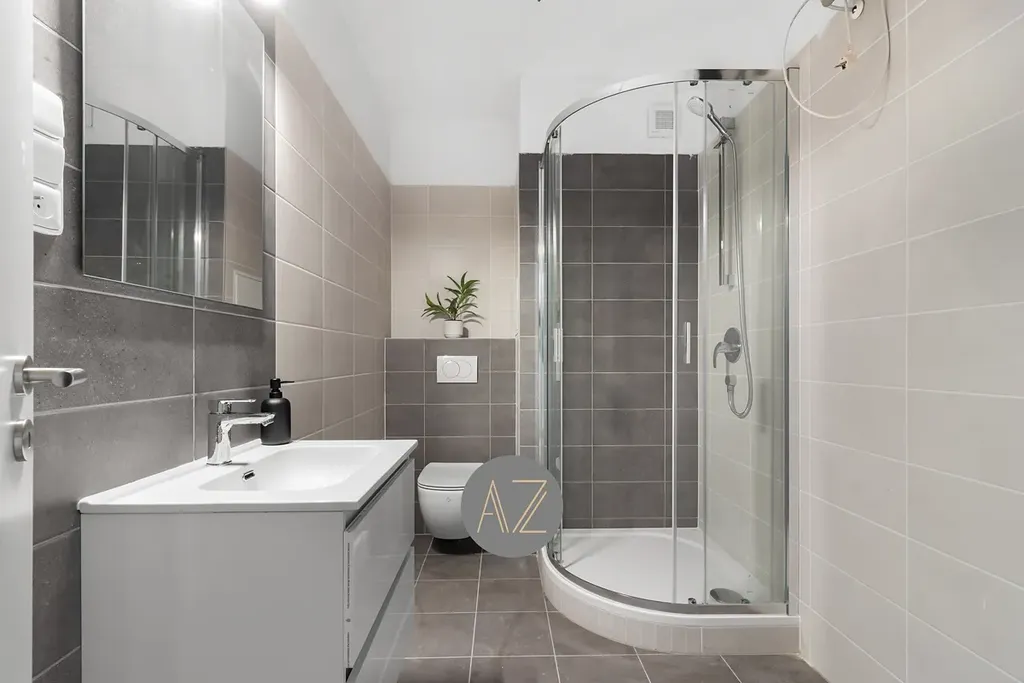 Z chodby se vchází do ložnice, která sousedí s koupelnou vč. WC. Koupelna v moderním nadčasovém designu je vybavena sprchovým koutem přípojkou na pračku, elektrickým žebříkem, umyvadlem na skříňce a závěsnou toaletou.