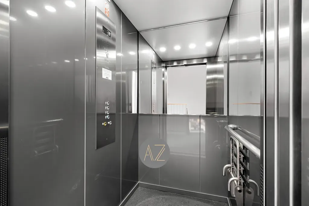 Přímo naproti vchodovým dveřím se na konci chodby, kde je vpravo prostor na umístění skříní, se vstupuje do prostorného obývacího pokoje spojeného s kuchyní. Obývací pokoj je ukončen francouzskými okny se vstupem na lodžii s osvětlením a zásuvkou.
