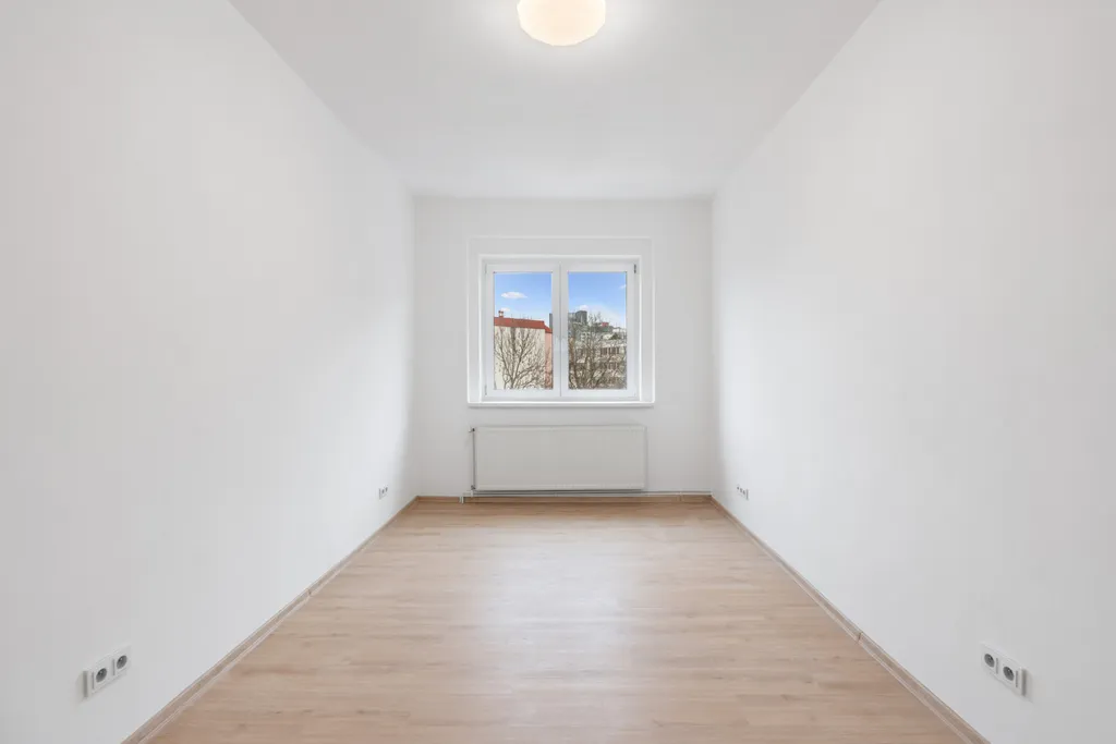 Dispozice bytu: předsíň, koupelna, samostatné WC, komora, ložnice a obývací pokoj s kuchyňským koutem orientovaná do klidné ulici. Dům má společné prostory a vnitřní dvůr po rekonstrukci, který je k dispozici pro obyvatele domu.
