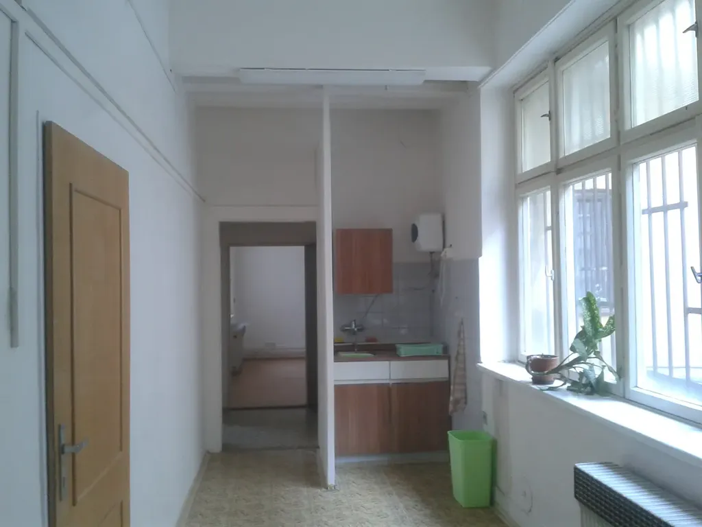 Kancelář, ateliér, sklad, studio, provozovna - nebytový prostor 27m2 s velkým oknem a vysokým stropem (3-3,5m). Možnost pronájmu parkovacího místa přímo ve dvoře, přes který je vstup.