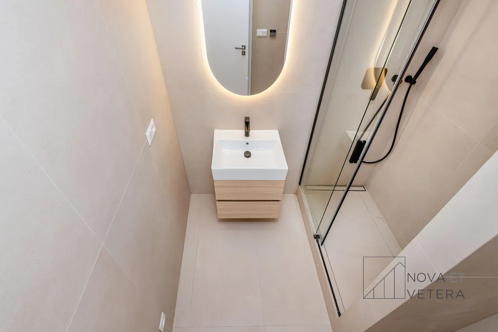 Byt právě prošel kompletní a kvalitní rekonstrukcí. Rekonstrukce zahrnuje nové rozvody elektřiny, vody a odpadů, moderní dřevěné podlahové krytiny, moderní obklady a dlažbu italské značky Marazzi a koupelnu se sanitou značky Grohe. Součástí je také zcela nová kuchyňská linka vybavená vestavnými spotřebiči prémiové značky Bosch s prodlouženou zárukou 5 let.