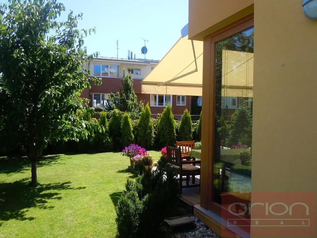 Nabízíme k pronájmu luxusní rodinný dům o velikosti 5+1 se zahradou a terasou v klidné ulici v lokalitě Praha 5 - Jinonice, v krátké pěší dostupnosti do Německé školy DSP, a pár minut jízdy do Francouzského lycea. Dům má obytnou plochu 350 m2, nabízí v přízemí zádveří, vstupní chodbu, prostorný obývací pokoj (52 m2) s krbem a se vstupem na terasu a zahradu, plně vybavenou kuchyň, 1 ložnici, koupelnu se sprchou a toaletou. V patře jsou tři ložnice - z toho hlavní ložnice má vlastní šatnu a koupelnu se sprchou, vanou, toaletou, bidetem, druhá koupelna se sprchou a toaletou, komora, balkon přístupný ze dvou ložnic a terasa. V suterénu domu je vinárna s krbem a kuchyňkou, posilovna se saunou a sprchovým koutem. toaleta, skladové prostory. V domě jsou masivní dubové podlahy, italské obklady, v ložnicích vestavěné skříně. K vybavení domu patří satelit, internet, alarm, videotelefon, garáž pro 2 auta a další parkovací stání je na pozemku. Udržovaná zahrada o velikosti s automatickým zavlažováním. Klidná rezidenční lokalita u přírodní rezervace Vidoule, pár minut pěšky je stanice metra Nové Butovice a Jinonice, v blízkosti nákupní centrum Galerie Nové Butovice nebo Metropole Zličín. Výborné spojení je do centra nebo na letiště.