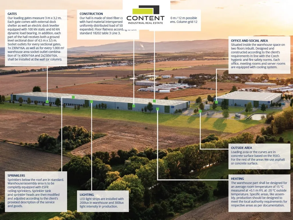 V zastoupení majitele a bez provize nabízíme atraktivní novostavbu skladu nebo výrobních prostor v nově vznikajícím logistickém parku u dálnice D7, exit 75.