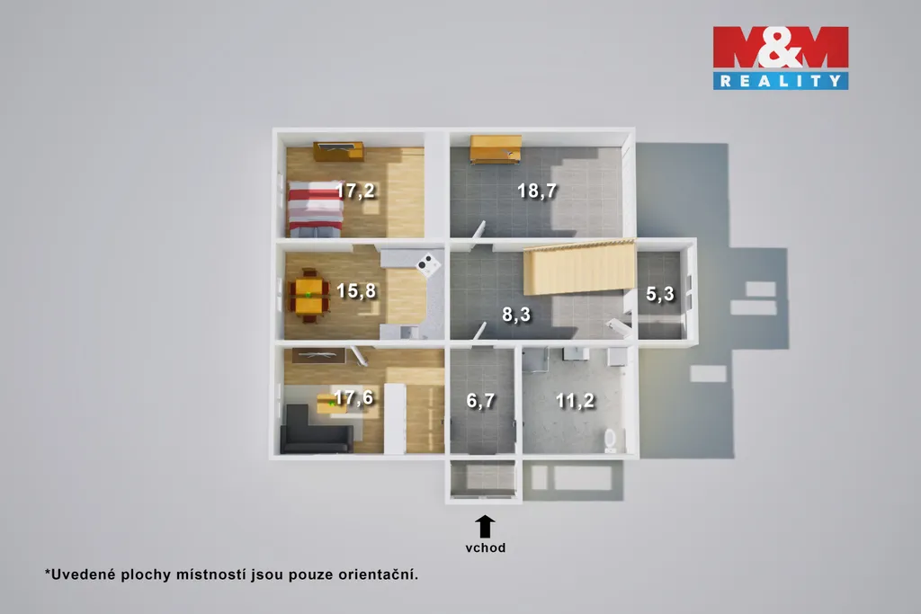 Následně v půdních prostorech domu je byt o dispozici 4+kk, ve kterém proběhla rekonstrukce. Dům není rozdělen na bytové jednotky. V domě je vytápění a ohřev vody řešen tuhými palivy. Lze ale předělat na vytápění na plyn, který se nachází v domě. V okolí se nachází veškerá občanská vybavenost. V případě prohlídky a více informací mě neváhejte kontaktovat.