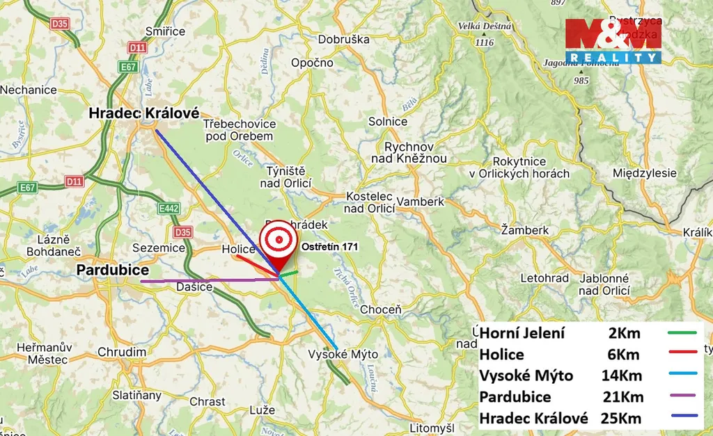 Strategická poloha v blízkosti dálnice umožňuje rychlý přístup do města. Dům je v samostatné poloze na okraji obce, což zaručuje klid a soukromí.