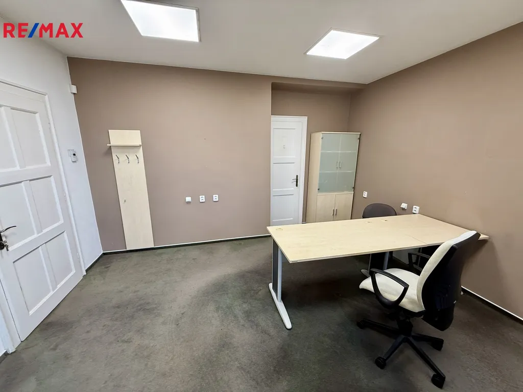 Kancelář má dva samostatné vchody, přes vstupní dveře z hlavní chodby, což nabízí možnost rozdělení prostor na dvě ideální poloviny.