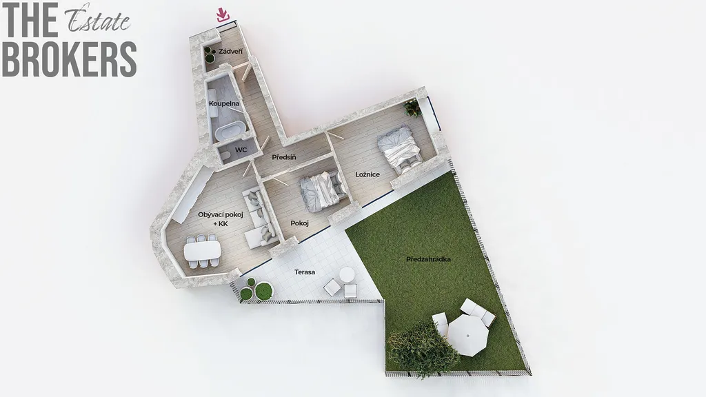 Prodej bytu 3+kk s prostornou zahradou a terasou