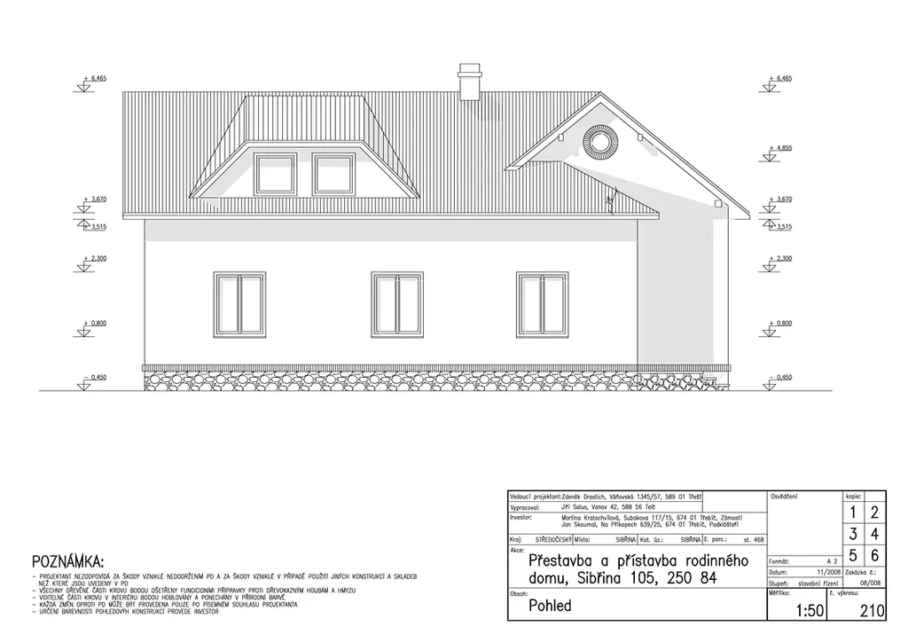 Stavba je provedena z kvalitních materiálů – zdivo Porotherm 44 cm, lité stropy, plastová okna, elektroinstalace v mědi, zateplení minerální vatou Knauf.