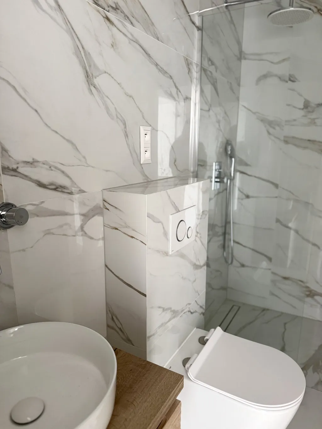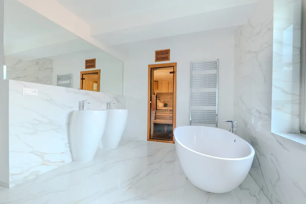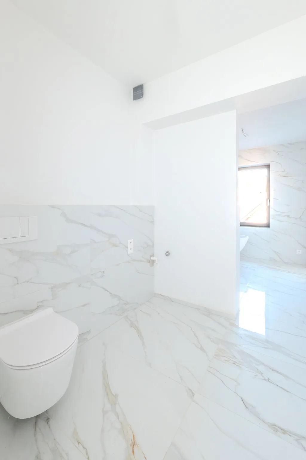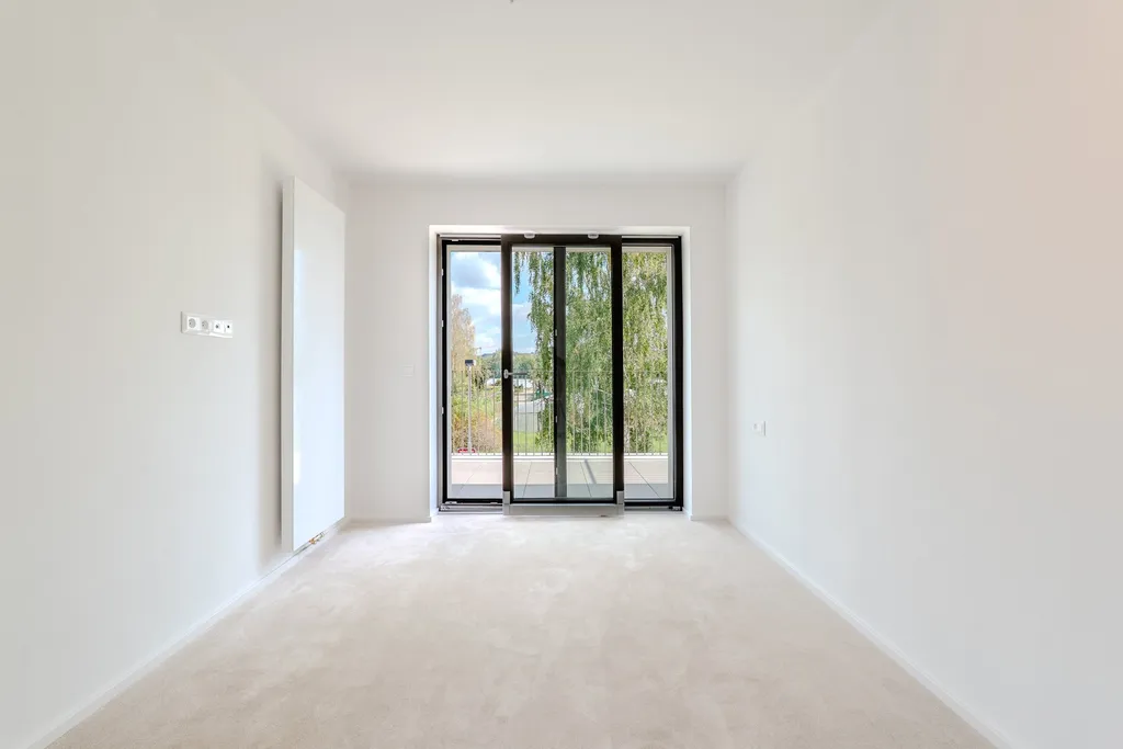 Standard zahrnuje plastová okna s trojskly, přípravu na venkovní žaluzie, elektrické podlahové vytápění v koupelnách s termostaty ABB, velkoformátové obklady a kvalitní sanitární vybavení.