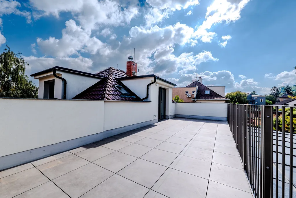 Hledáte prostor a soukromí rodinného domu, ale bez starostí s jeho údržbou? Tento jedinečný byt 5+kk v horním podlaží zrekonstruované vily nabízí velkorysé rodinné bydlení s vlastní terasou, saunou a výhledy do zeleně v klidné části Velké Chuchle.