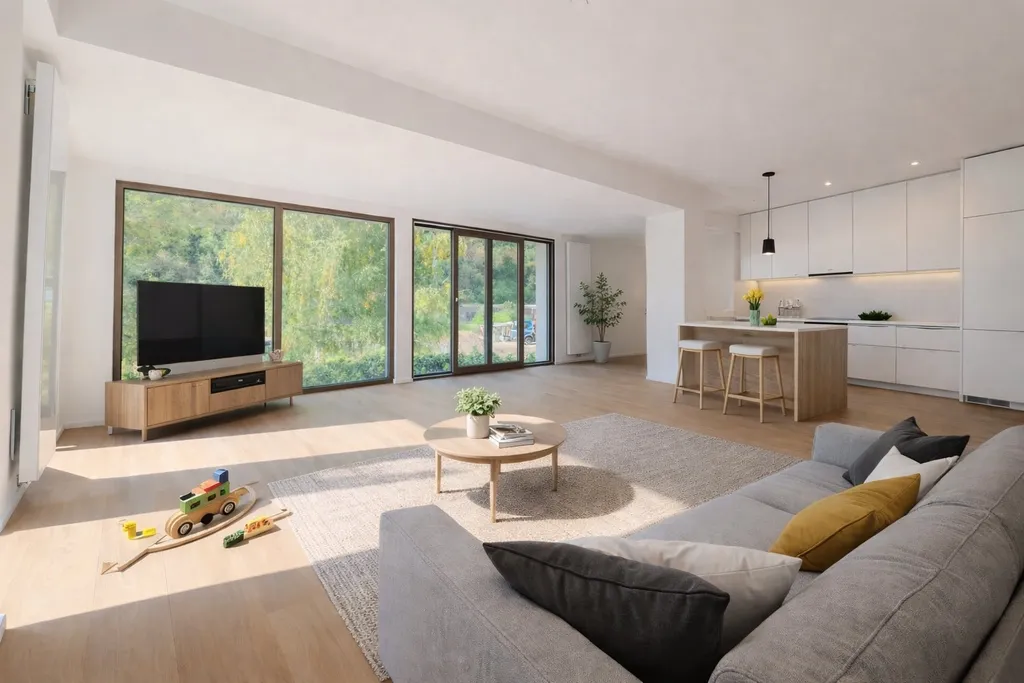 Byt je navržen jako komfortní domov pro rodinu nebo pár, který ocení dostatek prostoru, světla a moderní technická řešení. Hlavní obytný prostor s kuchyňským koutem je orientován do klidného okolí a díky velkoformátovým posuvným oknům propojuje interiér s exteriérem. Příprava na krbová kamna umožňuje vytvořit příjemnou atmosféru domova během celého roku.