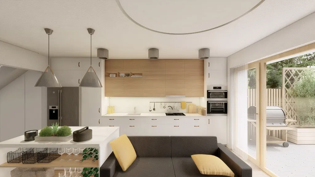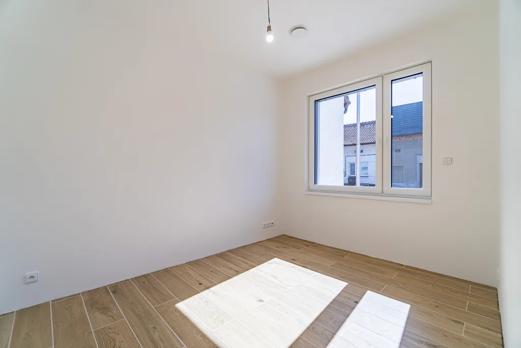 Řadový rodinný dům je dispozičně řešený jako 4+kk s možností změny na 5+kk, zahradou a dvěma parkovacími místy u domu.