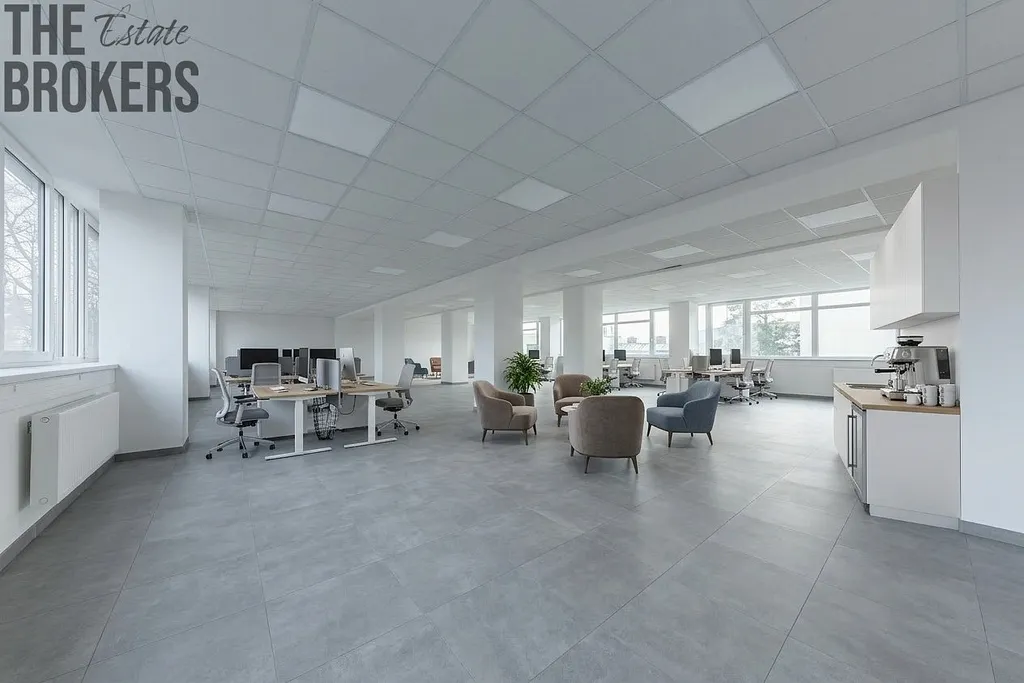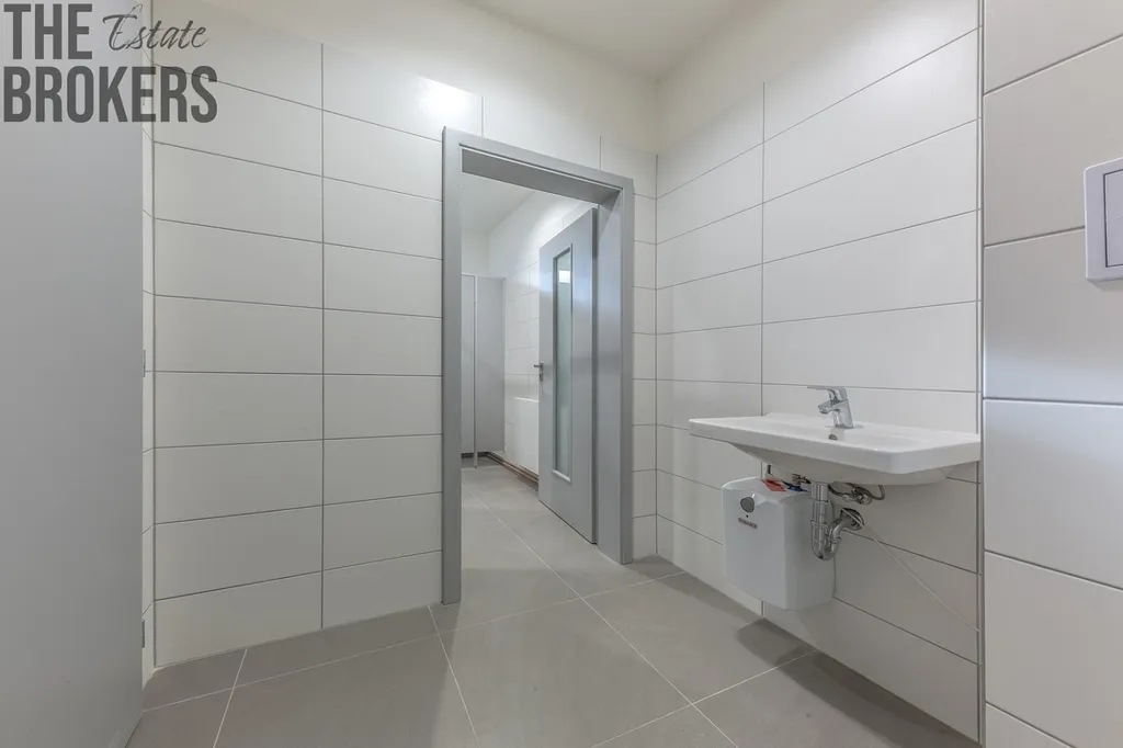 Exkluzivně nabízíme k pronájmu kancelářský prostor o celkové výměře 375 m² ve 2. nadzemním podlaží budovy ( 1. patro) na adrese Průběžná 76, Praha 10 – Strašnice. Hlavní část patra tvoří otevřený prostor o velikosti 347,35 m², který je možné upravit jako open space nebo rozčlenit na menší kanceláře a zasedací místnosti podle požadavků nájemce. Součástí zázemí jsou předsíň a WC pro ženy (3,48 m² + 6,19 m²), předsíň a WC pro muže (3,45 m² + 9,18 m²), technická místnost (2,44 m²), úklidová místnost (2,85 m²), m²). Patro je připraveno pro vedení datových rozvodů v podhledech, nabízí možnost instalace klimatizace, disponuje rozvody vody a kanalizace, ústředním vytápěním radiátory, silnoproudem i slaboproudem a napojením na vzduchotechnické trasy. Podlahy jsou betonové v hlavním open space a keramické v sociálním zázemí; stěny tvoří sádrové omítky a stropy kazetové SDK podhledy. Standardní výška stropu je přibližně 2,6 m. Prostor je přístupný výtahem i schodištěm a je vhodný pro dlouhodobé administrativní nebo kombinované využití díky dobré dostupnosti MHD, napojení na hlavní pražské tahy a občanské vybavenosti v bezprostředním okolí. V domě máme další dvě patra o stejné rozloze k pronájmu. Preferujeme dlouhodobé nájemce. V domě je recepce a čekací hala pro hosty. Vstup bude zajištěn přes čipové karty.