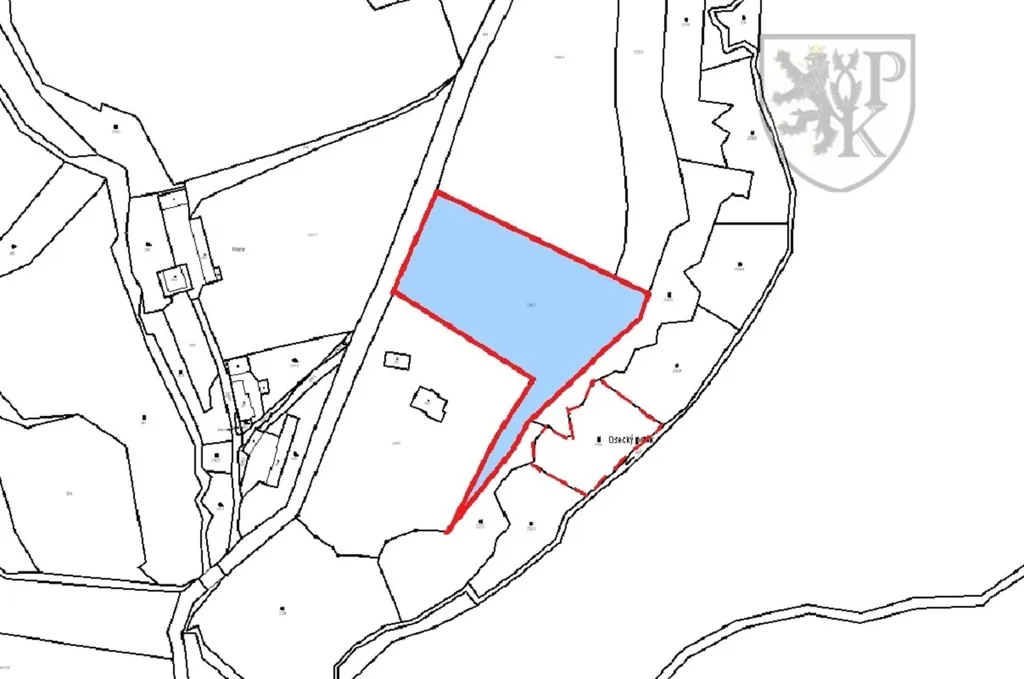 Pozemek určený územním plánem ke stavbě rodinného domu. Výměra 8456 m2.