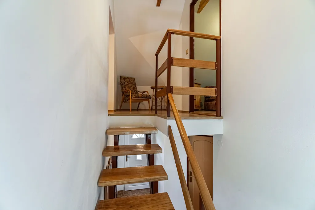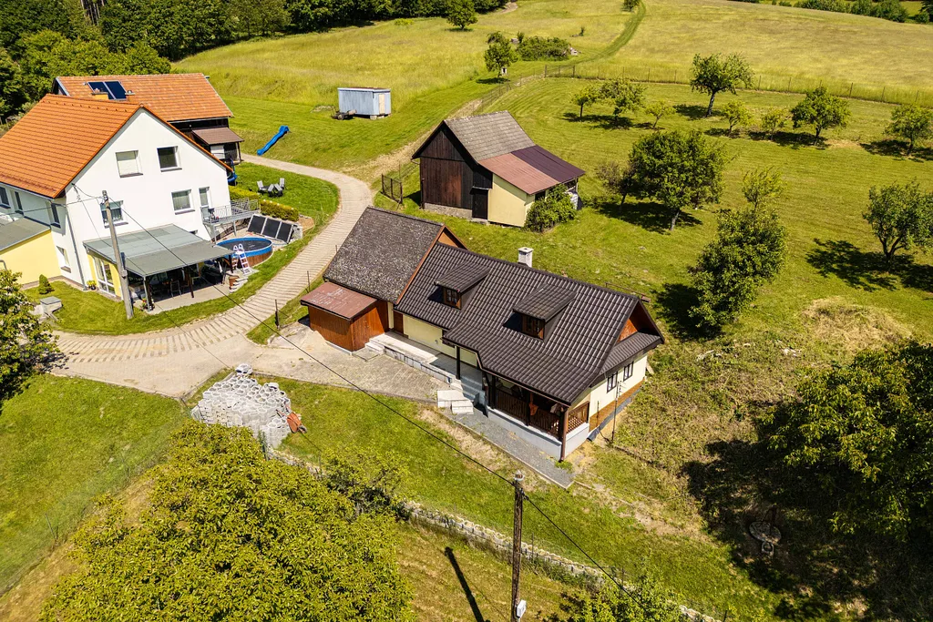 Nemovitosti se nachází v krásném prostředí a skýtají v sobě možnosti jak rodinného bydlení (pár minut do Zlína), tak i rekreačního využití. Velkou předností je udržovaná zahrada kolem domu. Dům je tvořen starší dřevěnou částí a novou zděnou částí. Stavba je napojena na elektřinu, plyn, kanalizaci, voda z vlastní studny. Dispozičně se jedná o nepodsklepenou stavbu s obytným přízemím, kde se nachází vstupní chodba, koupelna s WC, kuchyně, špajz, ložnice a obývací pokoj. Podkroví je částečně obyvatelné. Při realizaci přístavby došlo k výměně elektroinstalace a rozvodů vody. Základy domu jsou kamenné. Otop pomocí krbových kamen a plynových přímotopů, ohřev vody elektrickým bojlerem. Na zahradě se nachází stodola a ovocné stromy. Příjezdová komunikace je zpevněná a udržovaná. Financování vám pomůže vyřešit náš úvěrový specialista. Volné ihned