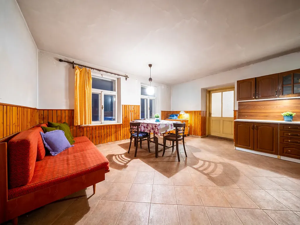 Klasická venkovská usedlost s rozsáhlým dvorem je určena ke kompletní rekonstrukci, respektive k zachování obvodových zdí a vytvoření nové stavby. K domu náleží ještě hospodářské a půdní prostory, které dříve sloužily k uskladnění sena a zázemí pro hospodářství a které nově můžete přetvořit na dílnu, ateliér, garáž nebo přístavbu. Na pozemek je přivedena elektřina a voda, vytápění je řešeno kachlovými kamny na tuhá paliva. Jistě vás potěší i vlastní studna.