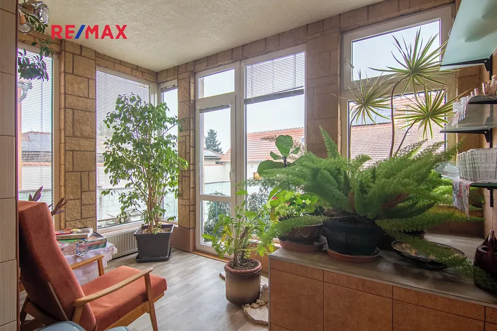 Dům nabízí celkem 5 místností, 2 koupelny (jedna s vanou, druhá se sprchovým koutem), 2 WC, prostornou vstupní halu, zimní zahradu orientovanou do dvora a velkou terasu s krásným výhledem. Je také částečně podsklepený (dostatek úložného prostoru).