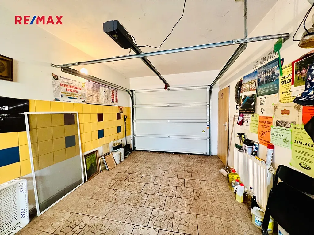 Velká garáž má elektrická sekční pojezdová vrata a je průjezdná - je možné projet až na pozemek za domem.