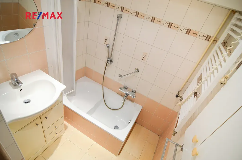 -koupelna s vanou, v koupelně otopný žebřík