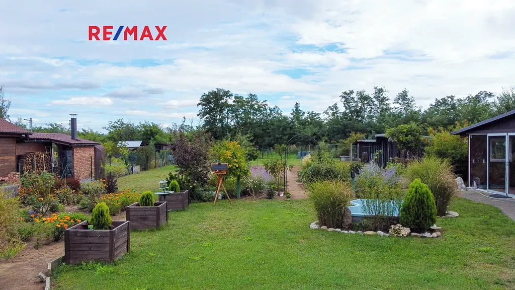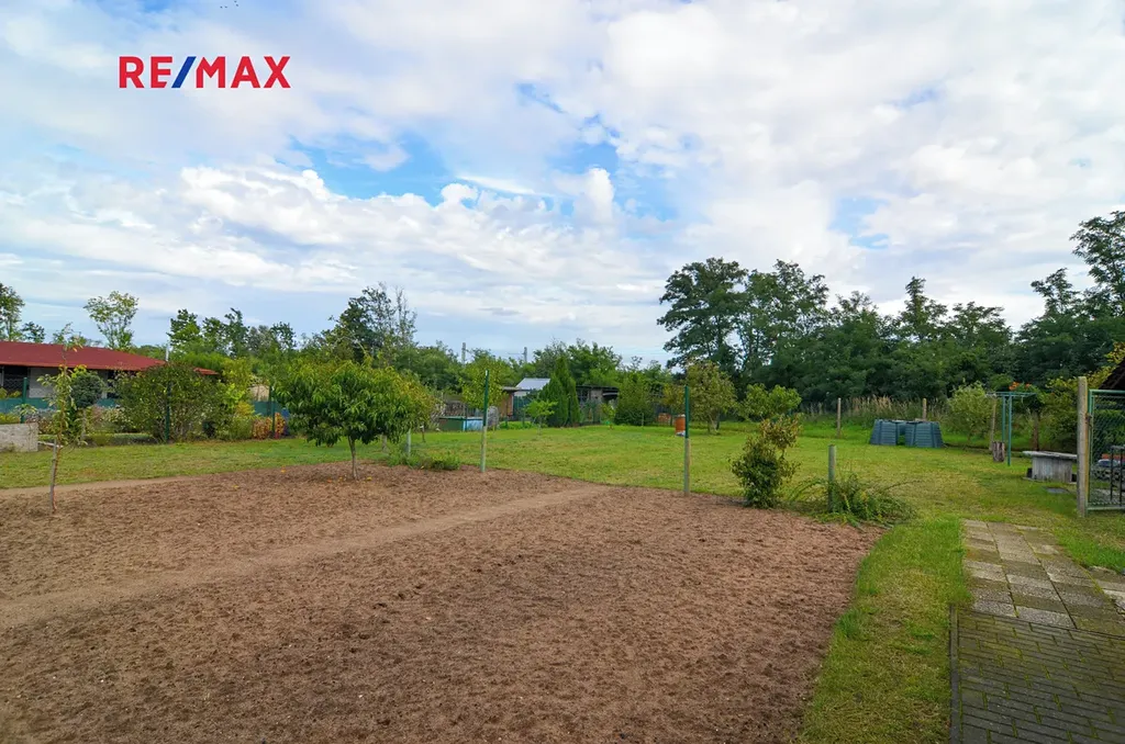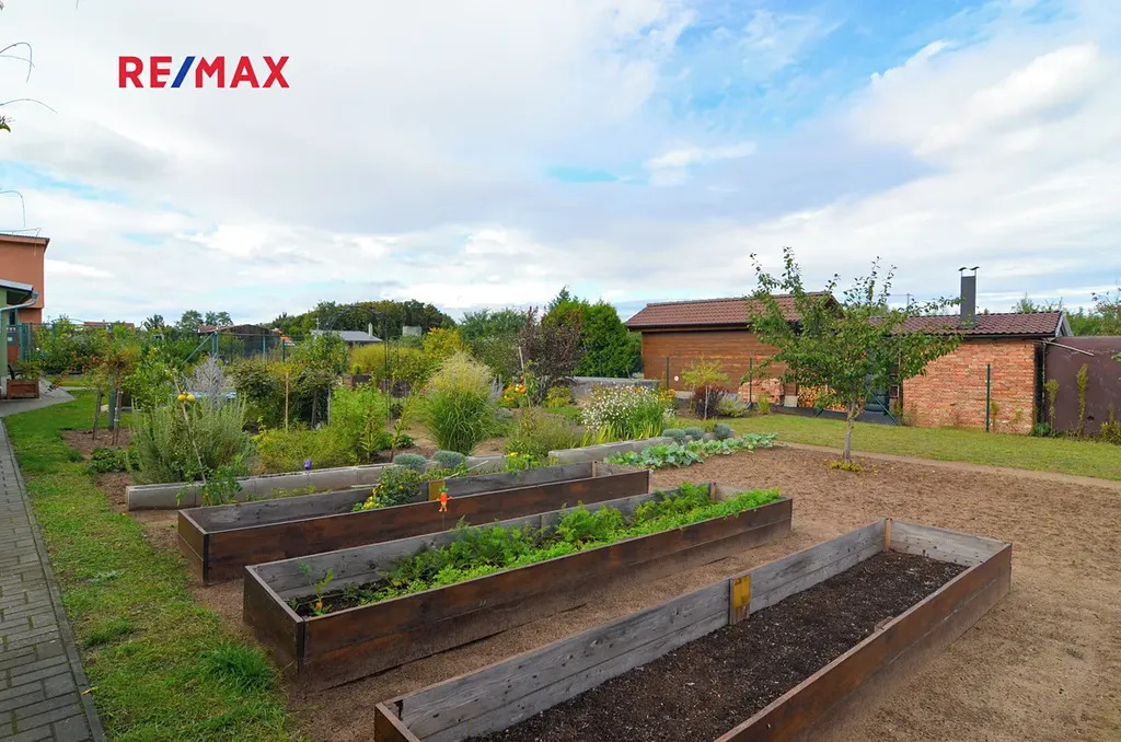 Zahrada plná záhonků čeká na milovníky vlastních výpěstků, ovocné stromky ...jablka, meruňky, blumy...