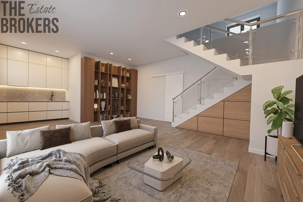 Interiéry (návrh v projektu): projektová dokumentace počítá s vinylovými podlahami v obytných místnostech a keramickou dlažbou v koupelnách a technických prostorách. Tyto prvky nejsou součástí aktuálního stavu – finální povrchy si jako budoucí majitel zvolíte přesně podle svého vkusu.