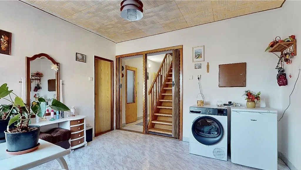 Prostorný sklep o čtyřech místnostech navíc propojený s garáží a výhodou je, že suchou nohou jdete přímo do patra domu. Ze sklepa můžete jít také na zahradu a nemusíte obcházet celý dům.