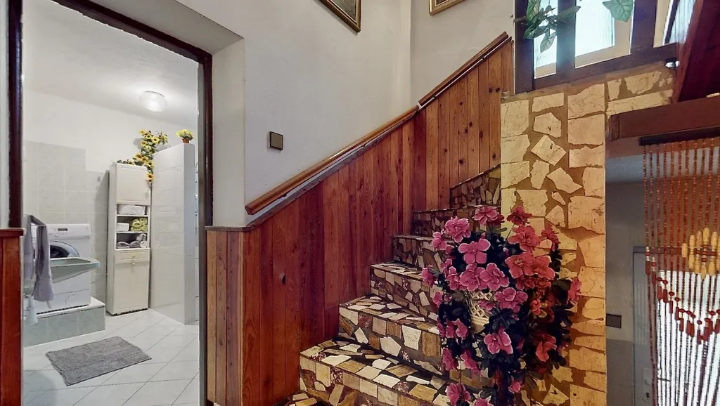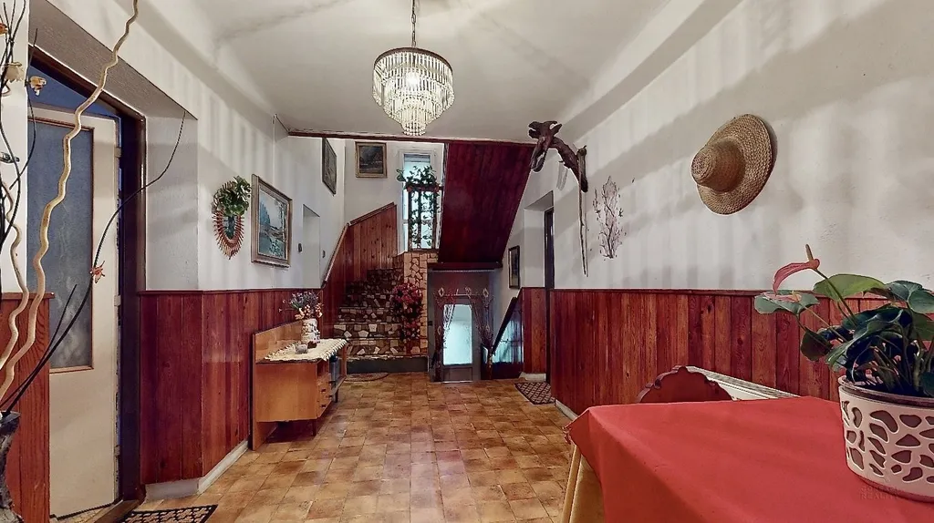 Dům o třech podlažích je za mě velmi udržovaný a plně funkční. Základ domu je vystaven z kamene a celý dům je podsklepený s možností vnitřního parkování vozidla. V patře je terasa se vstupem do prostorné chodby, která propojuje dispozici 2+1 (ložnice, obývací pokoj, kuchyni a koupelnu s toaletou).