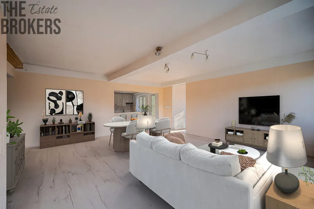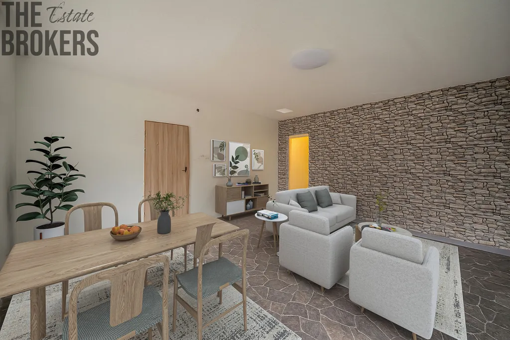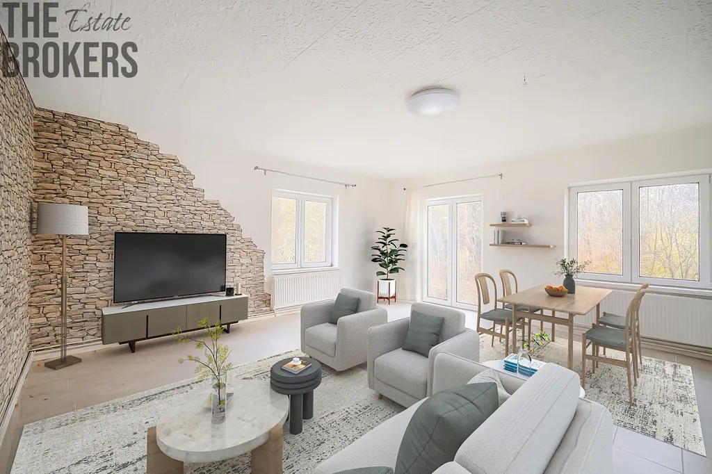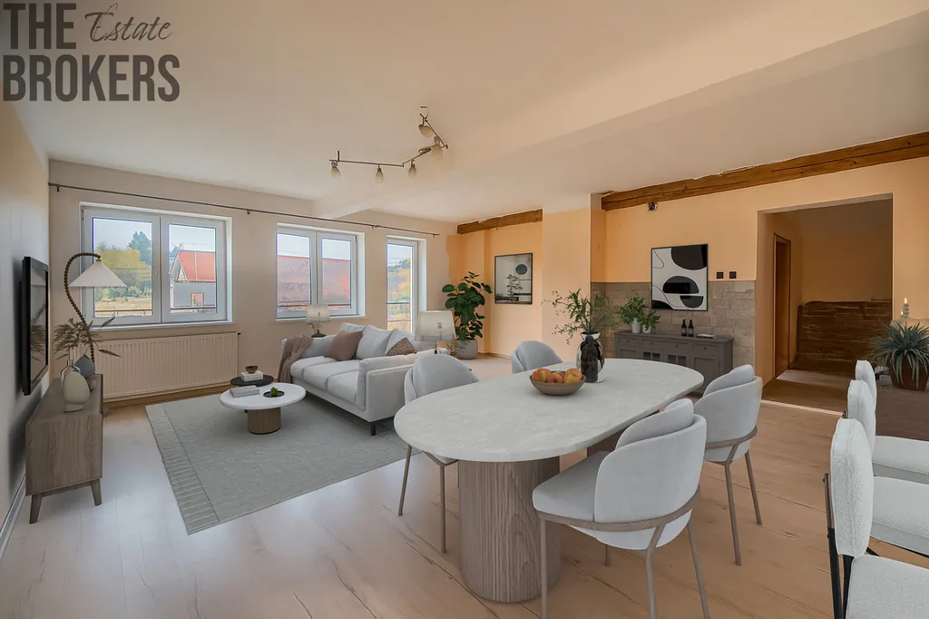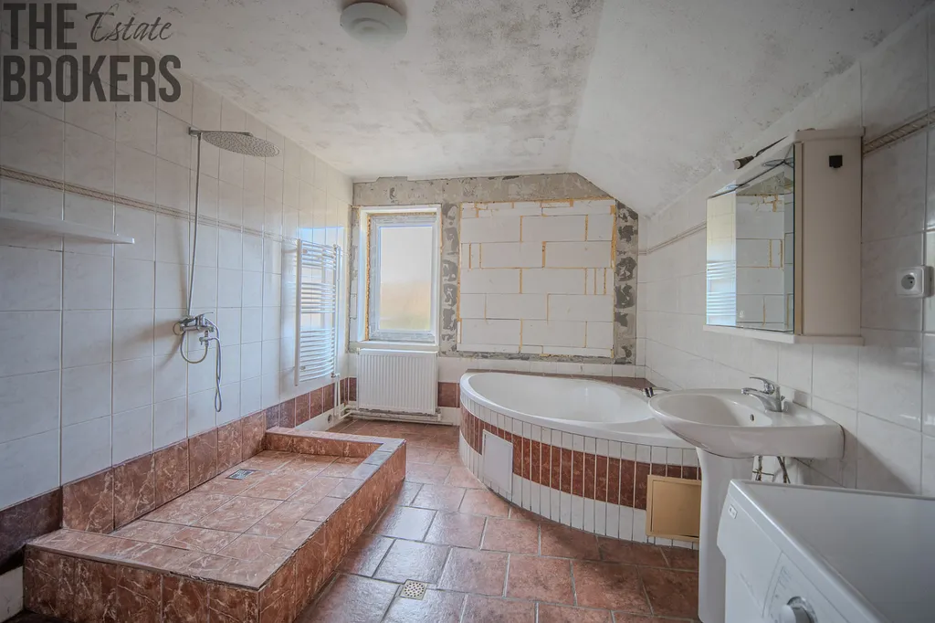 Část domu je tedy již po renovaci, zatímco jiné části jsou v dokončovací fázi, což umožňuje novému majiteli dotvořit si interiér přesně podle svého stylu a potřeb.