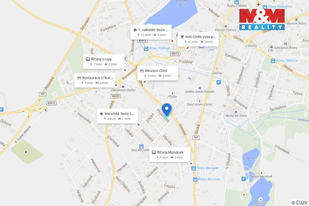 Dopravní dostupnost je zde nadstandardní – jen kousek od pozemku se nachází autobusová zastávka a Říčany jsou vyhlášené svým rychlým vlakovým spojením do Prahy - na Hlavní nádraží se pohodlně dostanete za 26 minut.