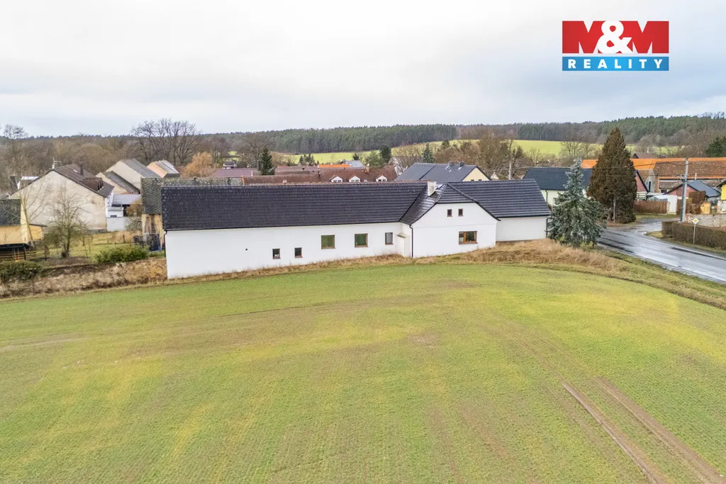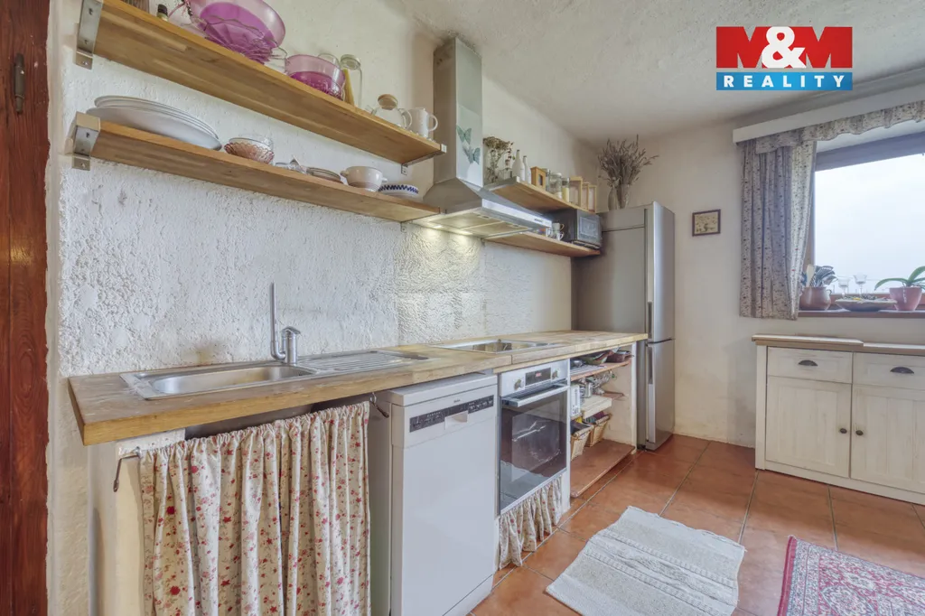 Dům s vlastním kusem přírody a zahradou až k řece – klidné bydlení nedaleko Plzně. Nabízíme k prodeji zrekonstruovaný rodinný dům o dispozici 4+1 ve Vodním Újezdu u Dobřan, situovaný na výjimečném pozemku o rozloze 5 355 m² sahajícím až k řece a poskytujícím soukromí i přímý kontakt s okolní přírodou. Nemovitost spojuje komfort moderního bydlení s atmosférou venkova – od uzavřeného dvora s pergolou pro příjemné posezení, bazénem až po rozlehlou zahradu ideální pro relaxaci, pěstování, chov zvířat či volnočasové aktivity. Součástí je také prostorná stodola v původním stavu s potenciálem pro dílnu, ateliér nebo další využití. Dům je napojen na vlastní studnu, vytápění zajišťují krbová kamna doplněná elektrickým kotlem. V Dobřanech se nachází základní škola i mateřská škola (cca 5 minut jízdy) a nájezd na dálnici D5 je dostupný přibližně do 10 minut autem směrem na Plzeň. Lokalita nabízí klidné bydlení v zeleni s výbornou dostupností města a kompletní občanskou vybaveností v dosahu.