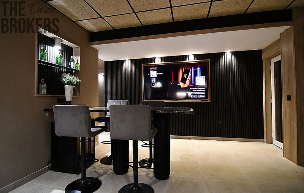 Špičkové soukromé kino se zvukovým systémem Klipsch 5.1 a barem s tanečním parketem.