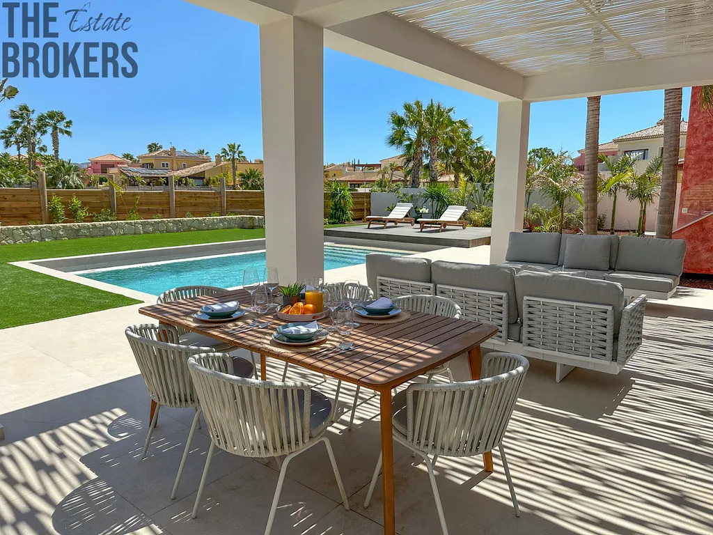 Venkovní prvky: Zahrnují standardní bazén 8m x 4m, obvodové oplocení, vjezdovou bránu a zastíněné parkovací místo. Soukromé, částečně zastíněné terasy na obou stranách nemovitosti, venkovní přívod vody a elektřiny a počáteční úprava zahrady jsou rovněž zahrnuty.