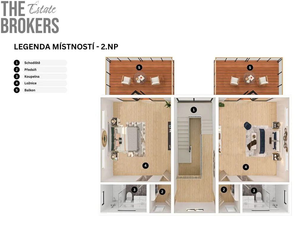 Vila je koncipována nejen pro pohodlné bydlení, ale také jako výhodná investice pro krátkodobé pronájmy, oblíbené turisty z celého světa. Dům má tři velkorysé ložnice, každá s vlastní koupelnou a terasou o velikosti 15 m², což zajišťuje maximální soukromí a komfort pro hosty.
